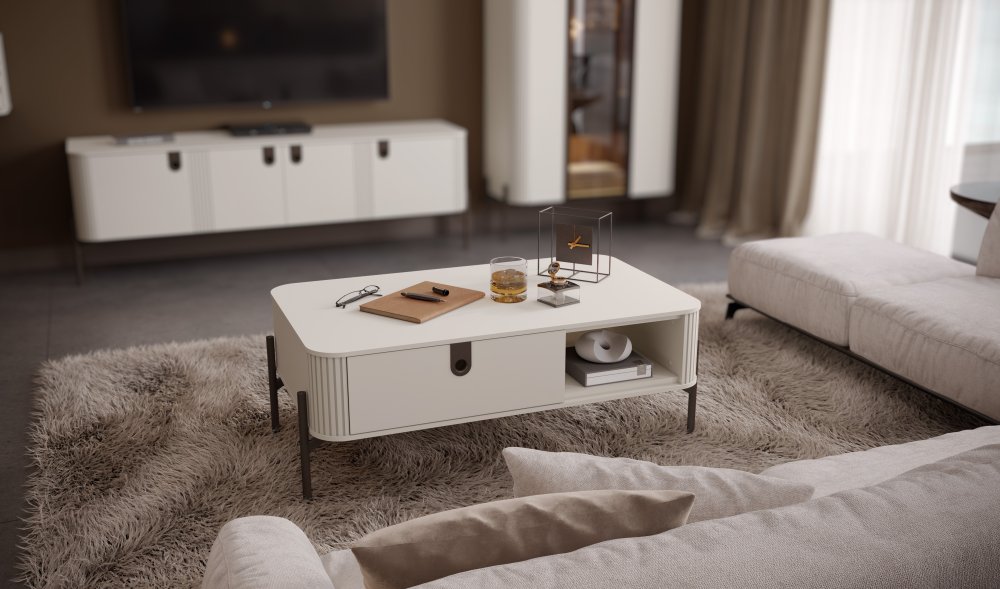 Kulaté konferenční stolky jsou ideální do menších prostor nebo k sedačkám s oblými tvary. Opticky změkčují interiér a působí lehce. Výbornou volbou může být například model RONDO – Cashmere lak mat.
