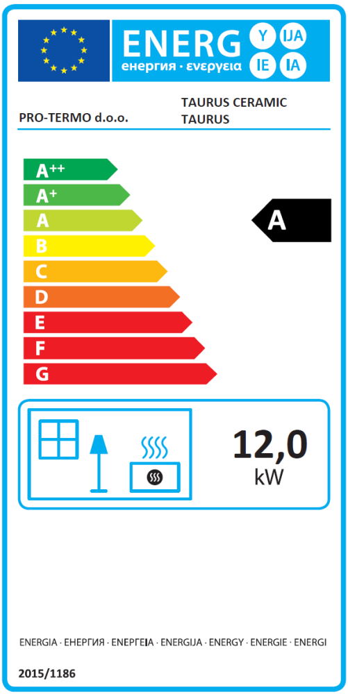 Krbová kamna na tuhá paliva s troubou - jmenovitý výkon 12 kW, pohyblivý rošt, účinnost vytápění 82 %, energetická třída A, Ekodesign 2022. Více