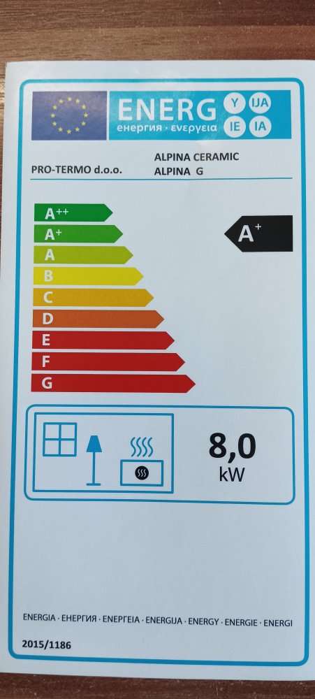 Krbová kamna na tuhá paliva - jmenovitý výkon 8 kW, účinnost vytápění 81 %, energetická třída A, Ekodesign 2022. Více