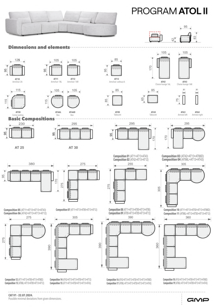 Sedací souprava GMP ATOL II je elegantní a pohodlná, s neobvyklým designovým prvkem v podobě zakulaceného okraje. Kromě této konkrétní sestavy si můžete vybrat i z dalších předem navržených variant, nebo si vytvořit vlastní sedací soupravu přesně podle svých představ. Více