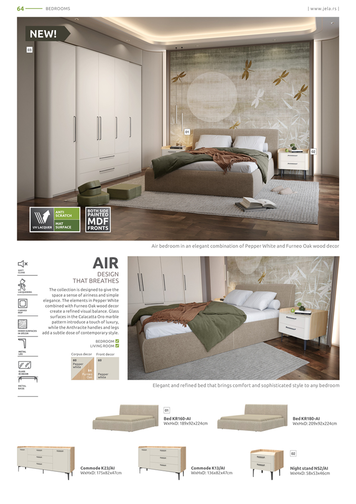 - všechna křídla skříně i obě zásuvky jsou oboustranně opatřeny měkkým matným UV lakem v dekoru Pepper bílá a jsou 4x odolnější proti poškození než standardní lakování